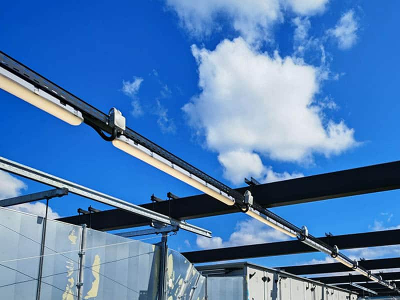 Pour les zones secondaires et l’éclairage de construction, une variété de lampes de construction FL14 ont été utilisées sous forme modifiée pour ce projet (7114s).