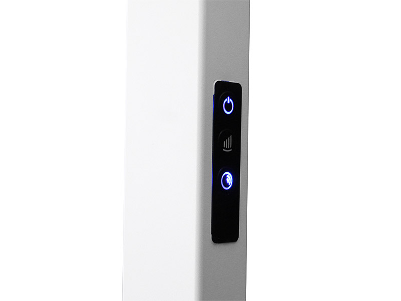Le système de capteur de l’éclairage est installé dans la tête d’éclairage plate (hauteur de construction 21,5 mm). Il présente une plage de saisie de 325° dans un rayon d’environ 3 m. Les paramètres du capteur sont effectués via le panneau tactile situé au pied de la lampe. En plus de la commande du capteur, l’éclairage est également dimmable manuellement via le panneau tactile. Le détecteur de présence qui peut être activé en option est préréglé à 15 minutes.