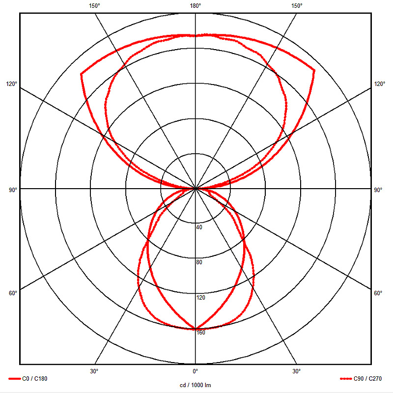La lampe a une proportion de lumière indirecte de 70 % et directe de 30 %.